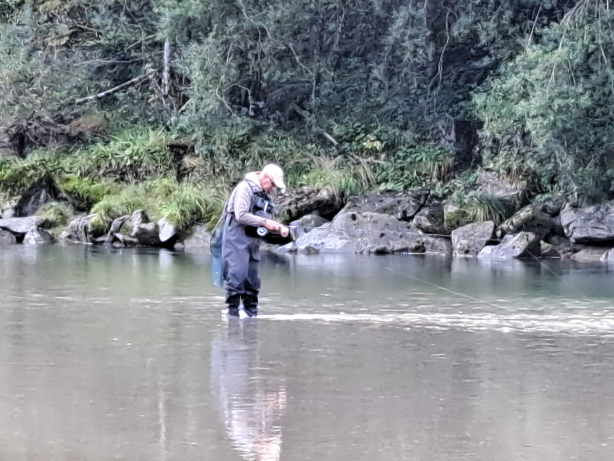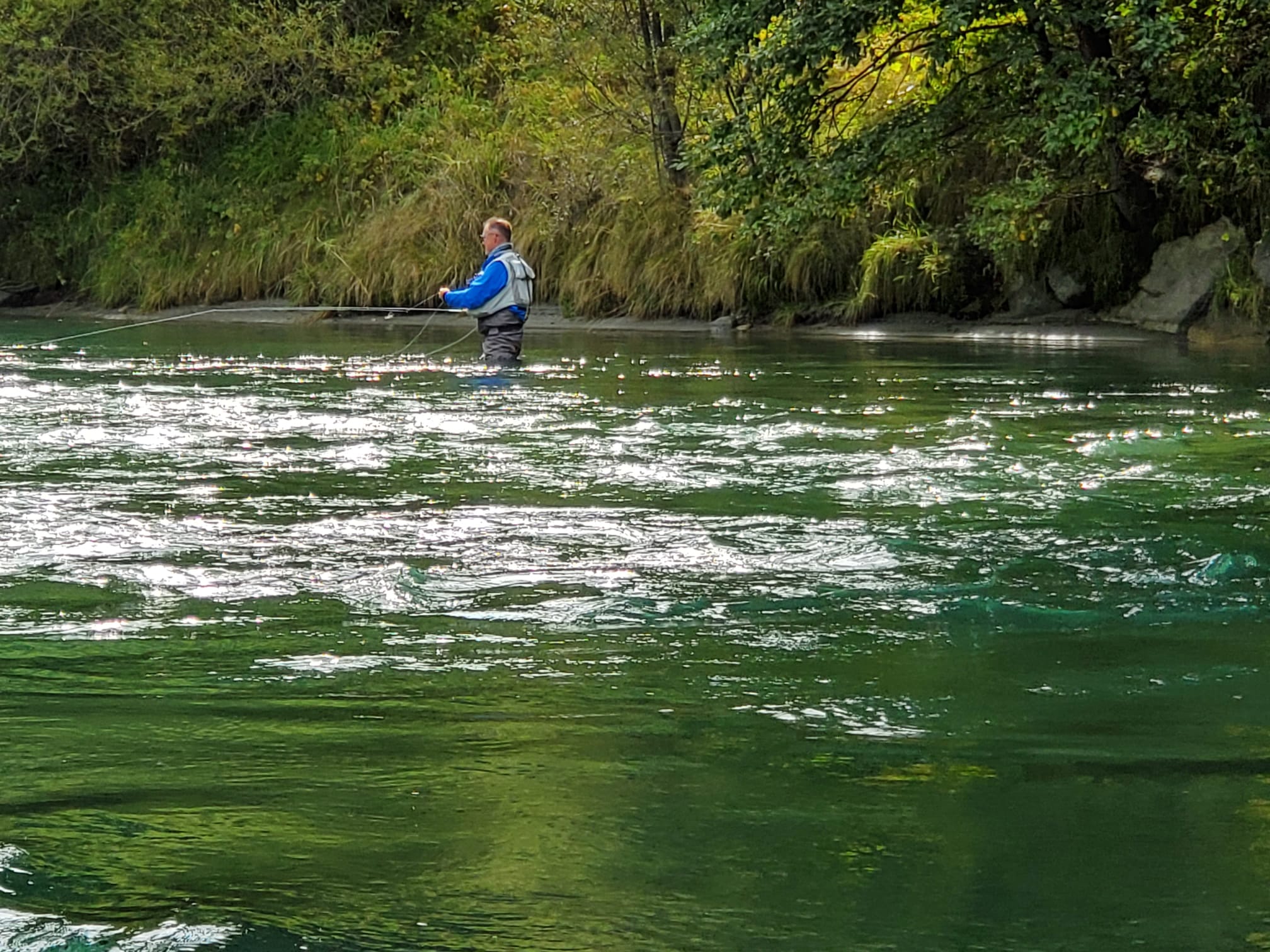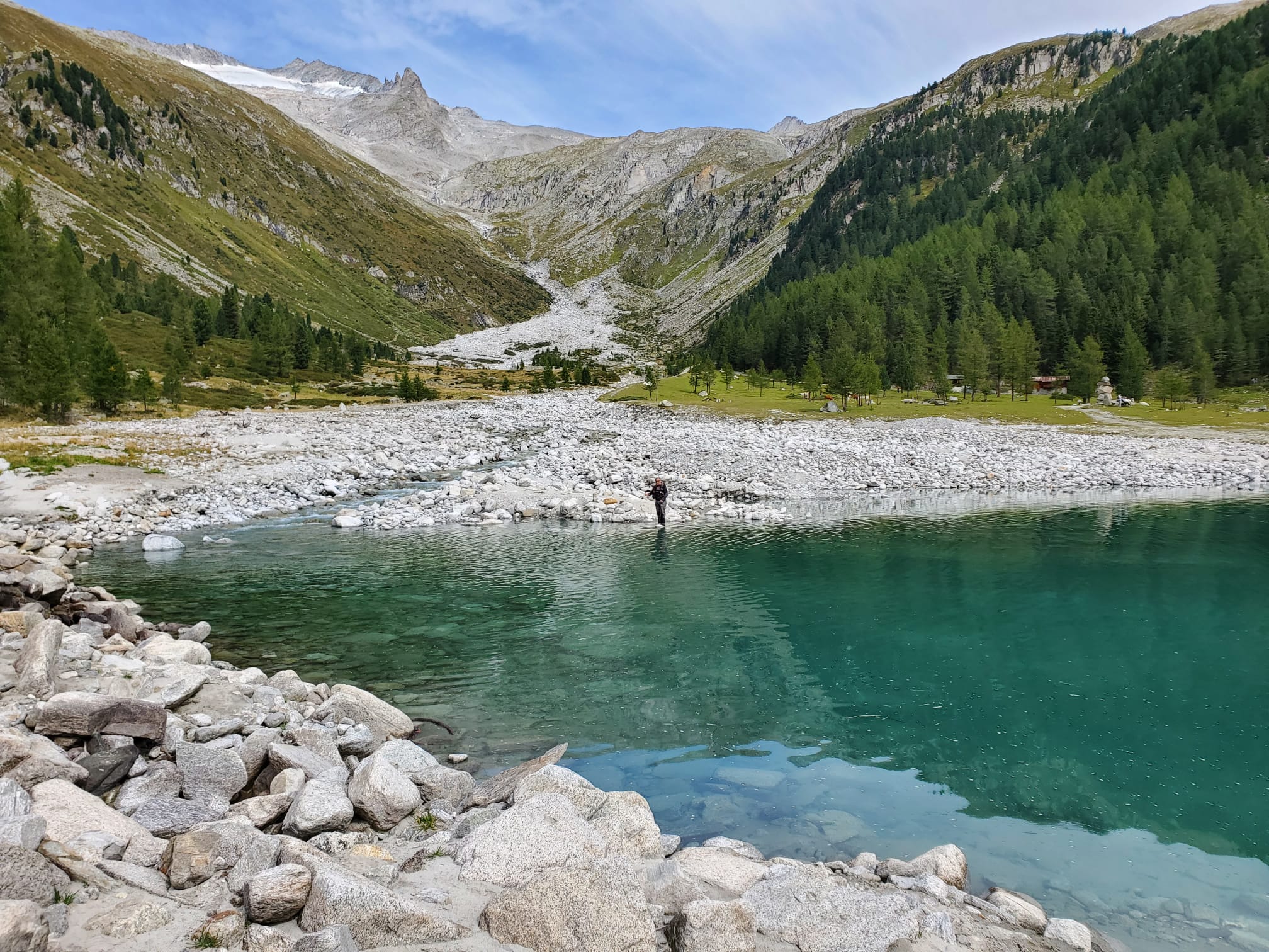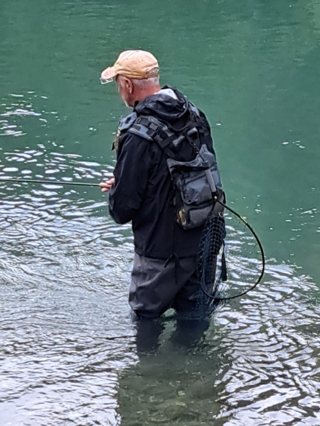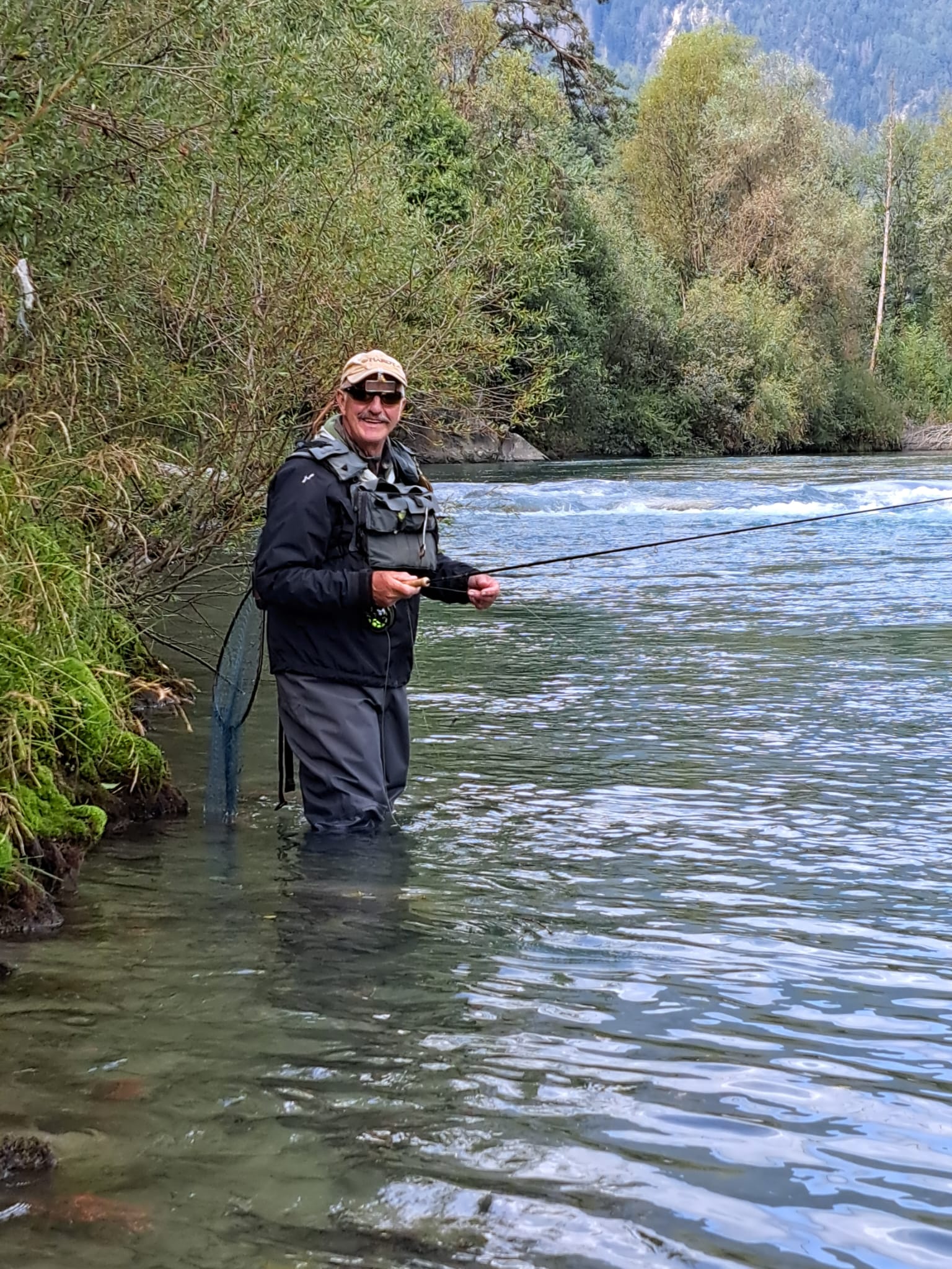 Trotz des durchwachsenen Wetters empfing uns dort eine atemberaubende Bergkulisse und kristallklares Wasser. Schon beim ersten Blick entdeckten wir prächtige Äschen und Saiblinge – ein Erlebnis, das sofort für Begeisterung sorgte.