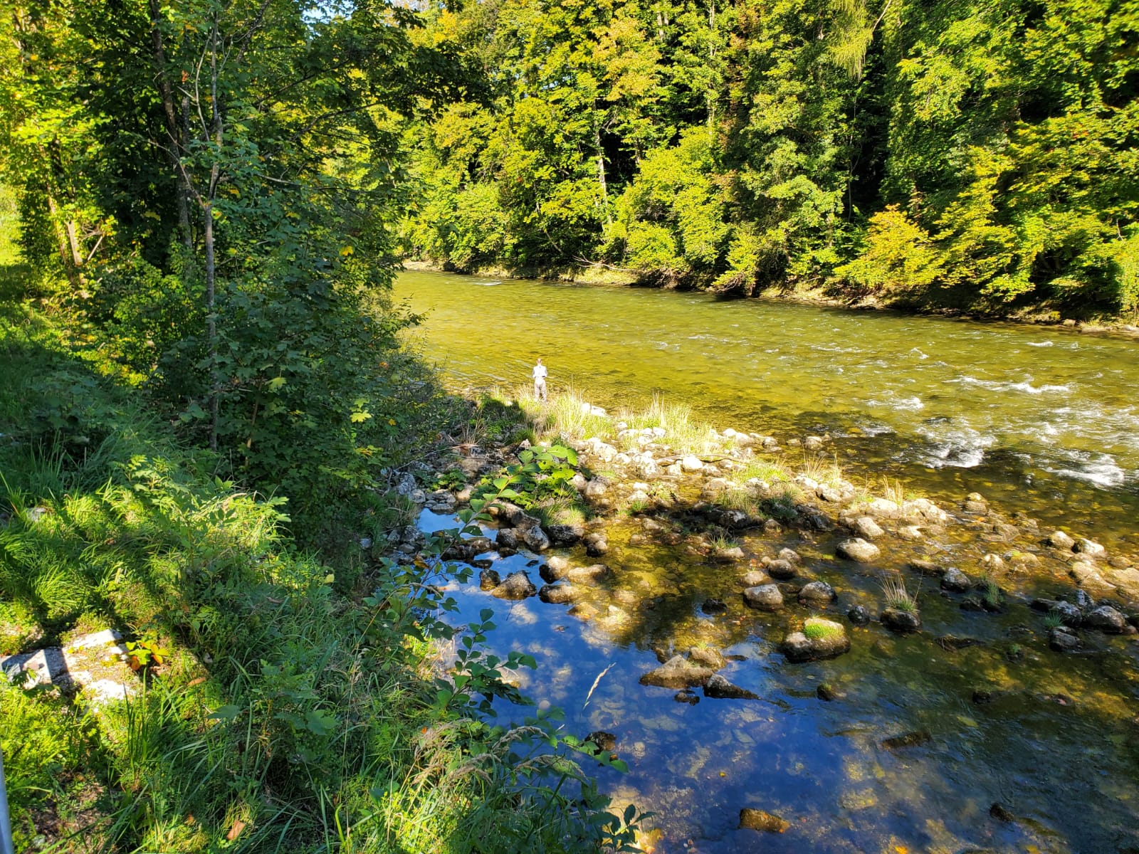 Am spannendsten wurde es dann am Auslauf des Sees. Unter einer Brücke standen mehrere kräftige Bachforellen, geschätzt auf 2–3 kg. Diese sorgten zwar für ordentlich Spannung, doch so sehr wir es auch versuchten – sie ließen sich nicht überreden, unsere Fliegen zu nehmen.