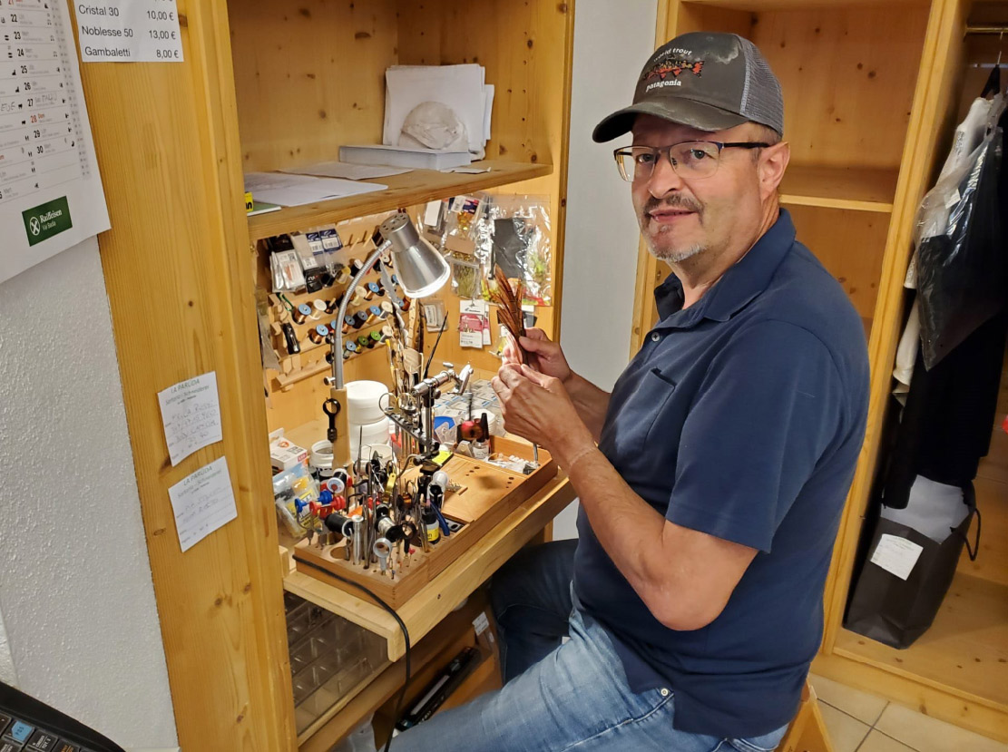 Gemeinsam mit unserem Guide Gotti machten wir uns am Vormittag auf den Weg ans Wasser. Er führte uns an die passenden Stellen und stellte uns einige seiner selbst gebundenen Fliegen vor.