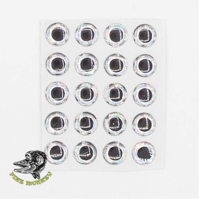 Epoxy-Augen zählen zu den beliebtesten Upgrades beim modernen Fliegenbinden. Sie verbinden Funktionalität mit Ästhetik: Neben dem attraktiven Glanz sorgen sie für einen präzisen Fixpunkt, auf den sich Räuber beim Angriff konzentrieren. Die holografische Silberbeschichtung dieser Pike Monkey-Augen erzeugt eine natürliche Reflexion, die Beutefische imitiert und in verschiedensten Lichtverhältnissen überzeugt. Mit ihrer langlebigen Epoxy-Versiegelung sind sie ideal für alle Fliegen, die häufig im Einsatz sind.