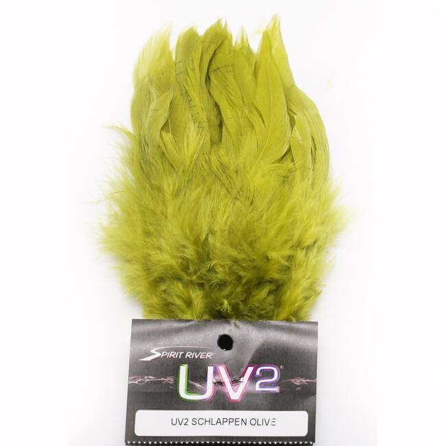 Schlappen stammen aus dem weichen Bereich des Hahnsattels. Sie sind bekannt für ihre langen, flexiblen Fibern, die selbst bei langsamer Führung im Wasser sanft pulsieren. Die UV2-Technologie bringt zusätzlich einen feinen Schimmer ins Spiel, der für eine erhöhte Reizwirkung sorgt. Diese Kombination aus natürlicher Bewegung und moderner Beschichtung macht UV2 Schlappen zu einem unverzichtbaren Bindematerial für alle, die ihre Fliegenmuster optimieren wollen – sei es bei der Hechtpirsch, beim Lachsfischen oder beim Binden effektiver Streamer für Forellen.
